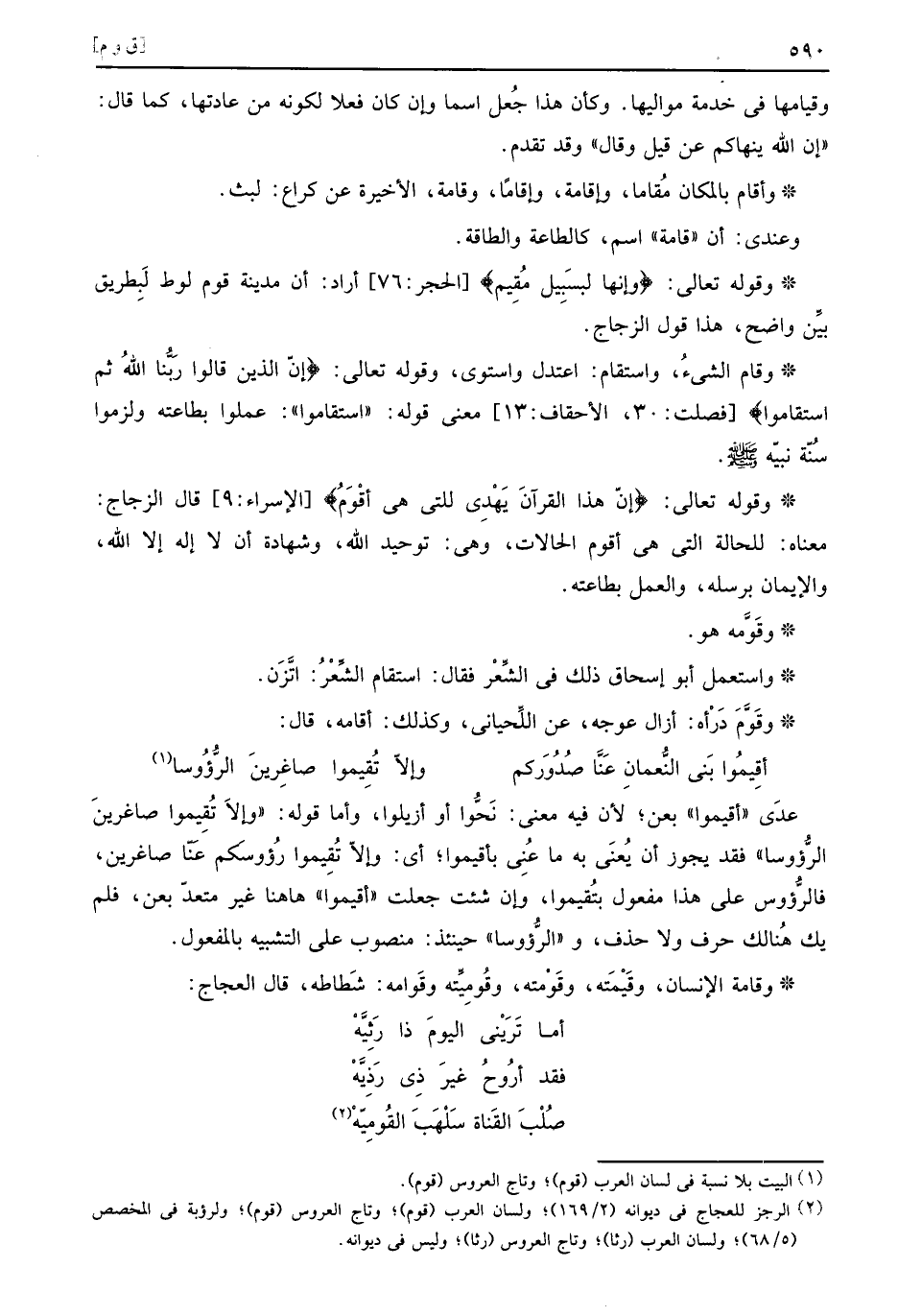 وَقَامَ الشَّيْء، واستقام: اعتدل واستوى، وَقَوله تَعَالَى: (إِن الَّذين قَالُوا رَبنَا الله ثمَّ استقاموا) معنى قَوْله: " استقاموا ": عمِلُوا بِطَاعَتِهِ ولزموا سنة نَبِيّهم صَلَّى اللهُ عَلَيْهِ وَسَلَّمَ.
