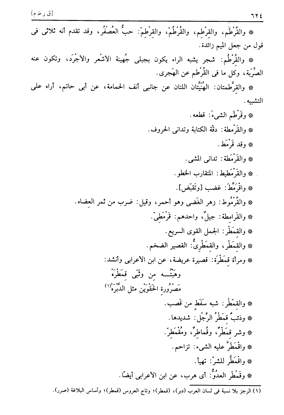والقرطم، والقرطم، والقرطم، والقرطم: حب العصفر، وَقد تقدم انه ثلاثي فِي قَول من جعل الْمِيم زَائِدَة.