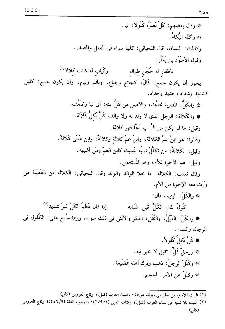 وَالْكل: الْمُصِيبَة تحدث، وَالْأَصْل من كل عَنهُ: أَي نبا وَضعف.