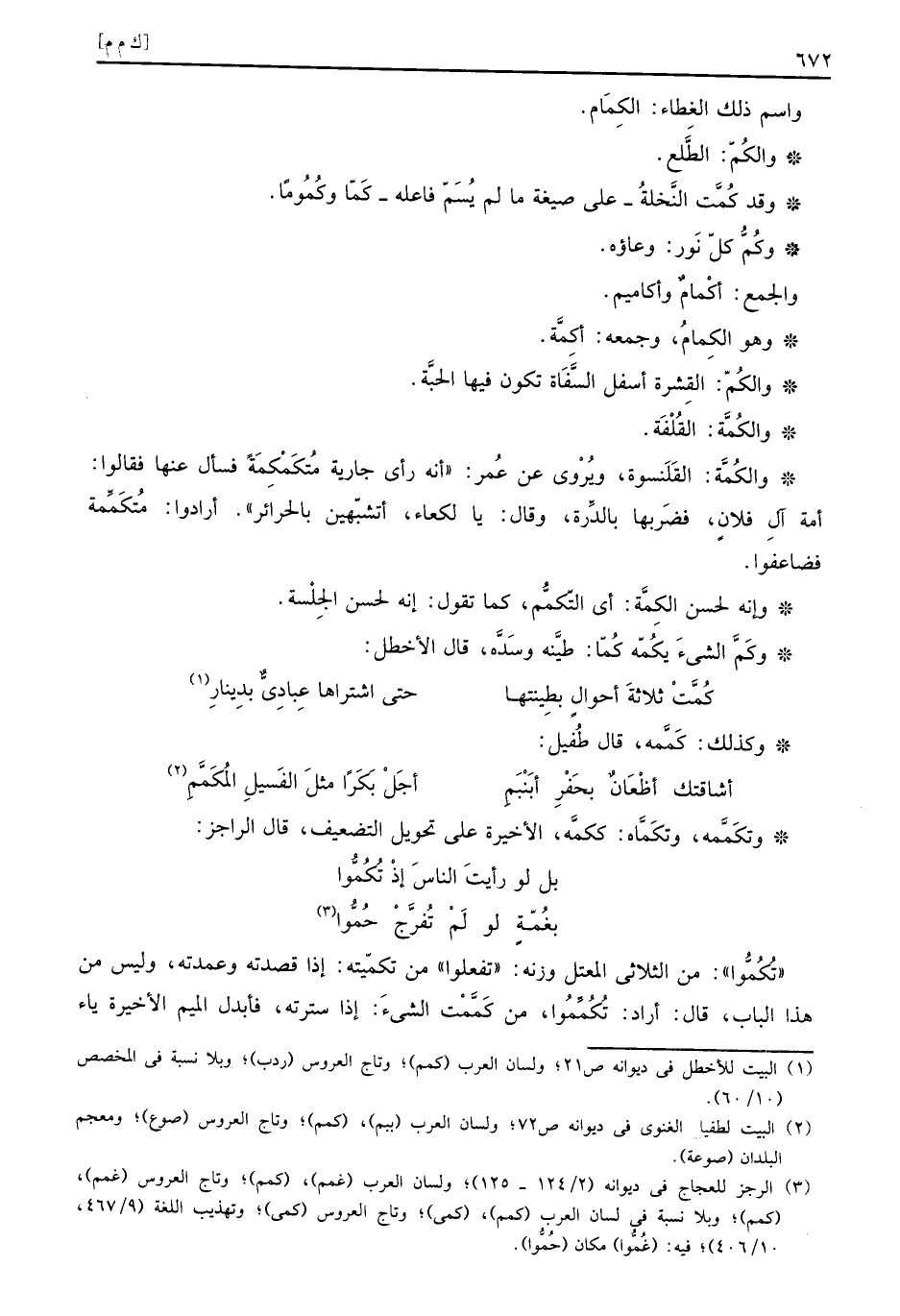 وَكَذَلِكَ: كممه، قَالَ طفيل: