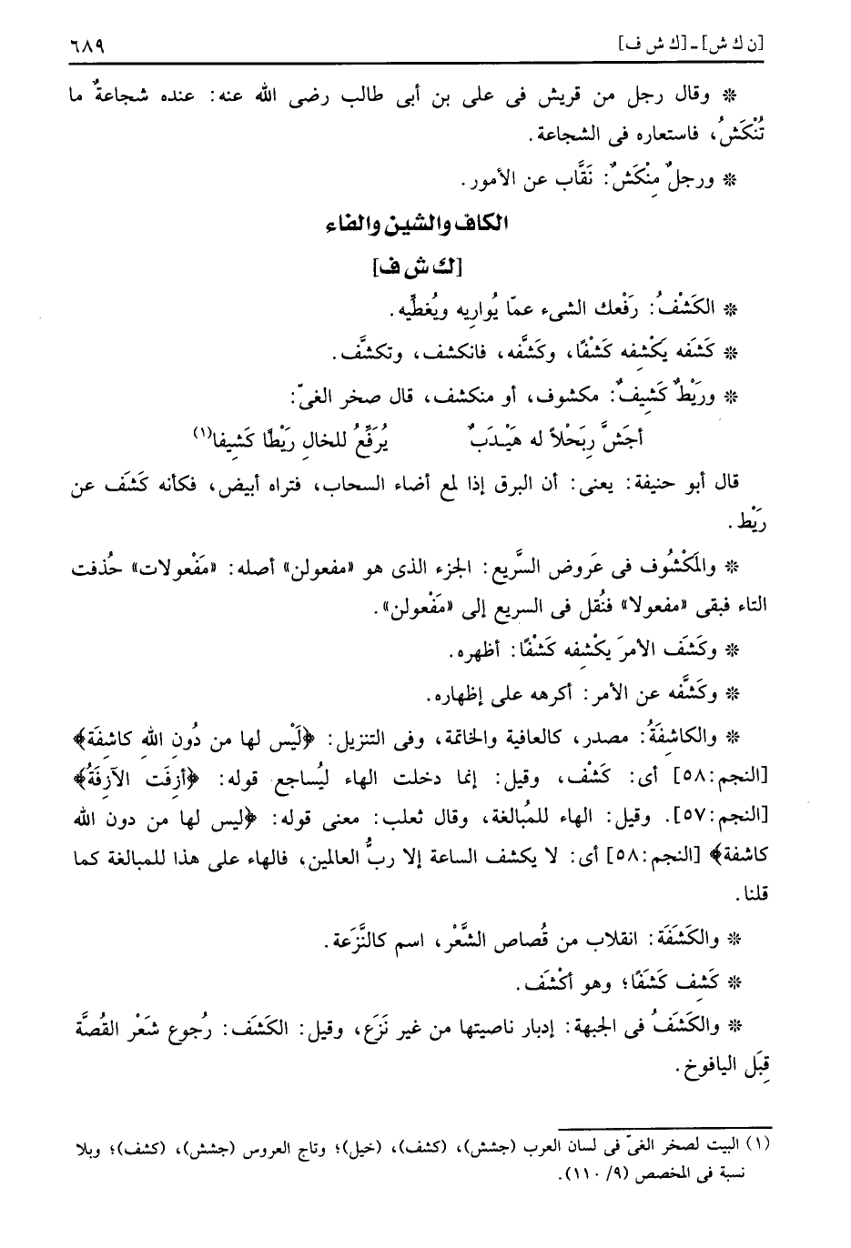 والمكشوف فِي عرُوض السَّرِيع: الْجُزْء الَّذِي هُوَ " مفعولن " أَصله: " مفعولات " حذفت التَّاء فَبَقيَ " مَفْعُولا " فَنقل فِي السَّرِيع إِلَى " مفعولن ".