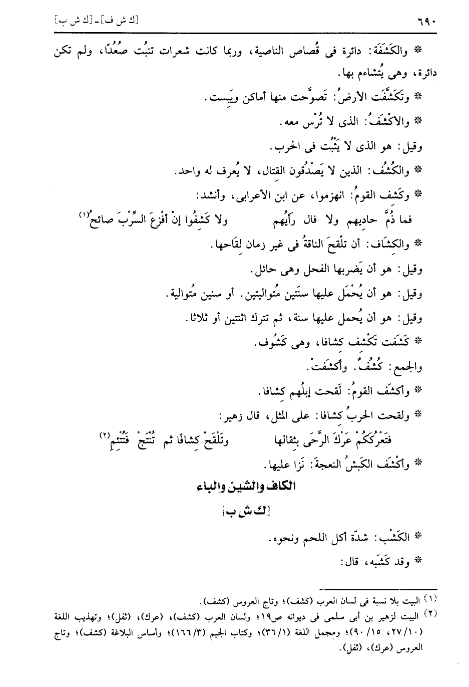 والكشف: الَّذين لَا يصدقون الْقِتَال، لَا يعرف لَهُ وَاحِد.