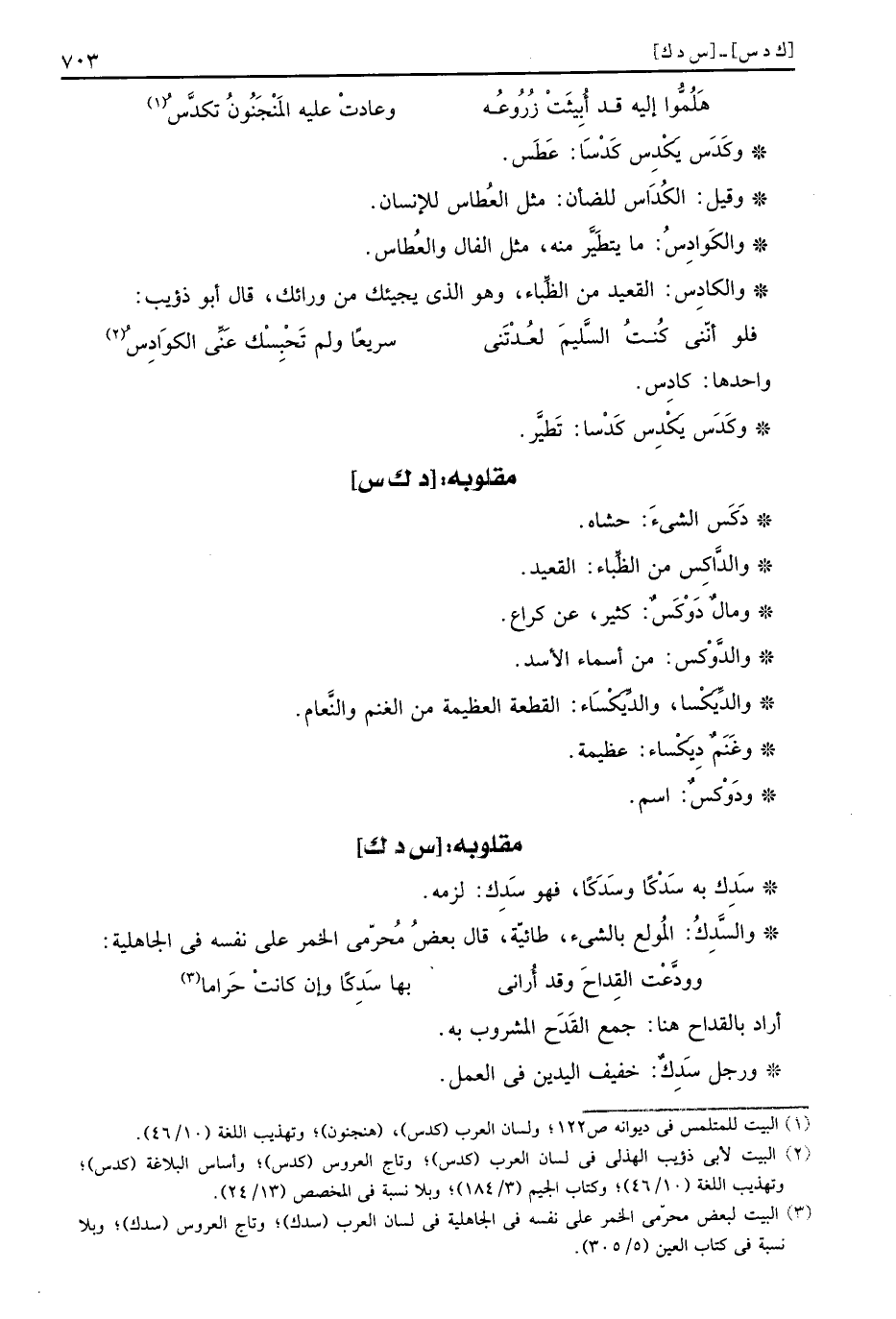 والكادس: القعيد من الظباء، وَهُوَ الَّذِي يجيئك من ورائك، قَالَ أَبُو ذُؤَيْب: