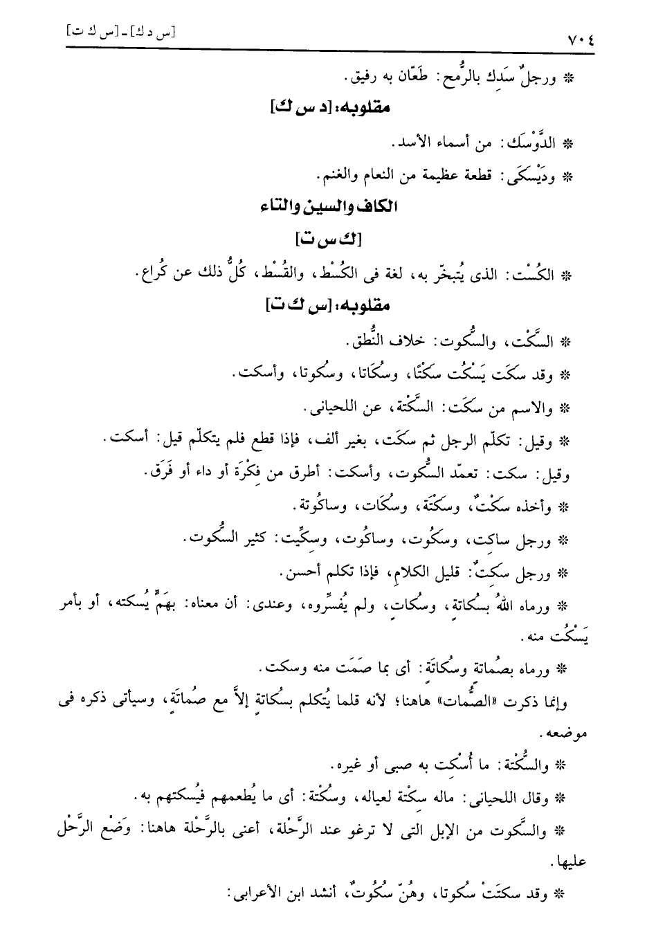 وَرجل سَاكِت، وسكوت، وساكوت، وسكيت: كثير السُّكُوت.