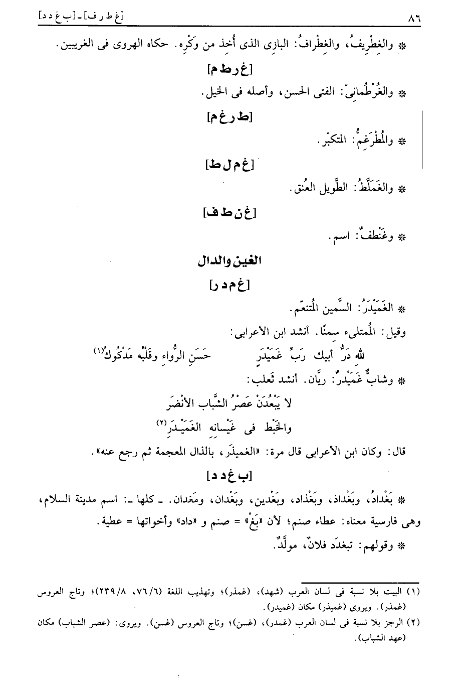 وَقَوْلهمْ: تبغدد فلَان، مولد.