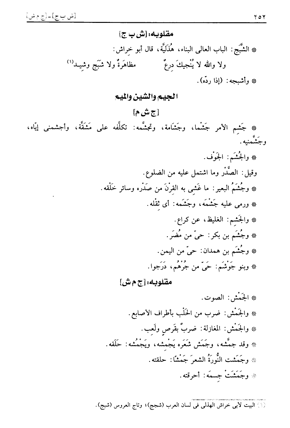 الشَّبَج: الْبَاب العالي الْبناء، هذلية، قَالَ أَبُو خرَاش: