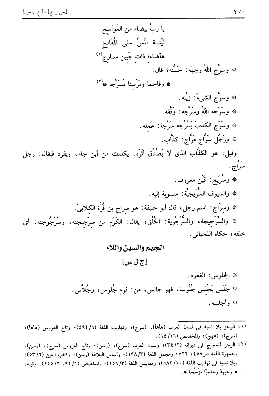 وَقيل: هُوَ الْكذَّاب الَّذِي لَا يصدق أَثَره. يكذبك من أَيْن جَاءَ، ويفرد فَيُقَال: جلّ سَرَّاج.