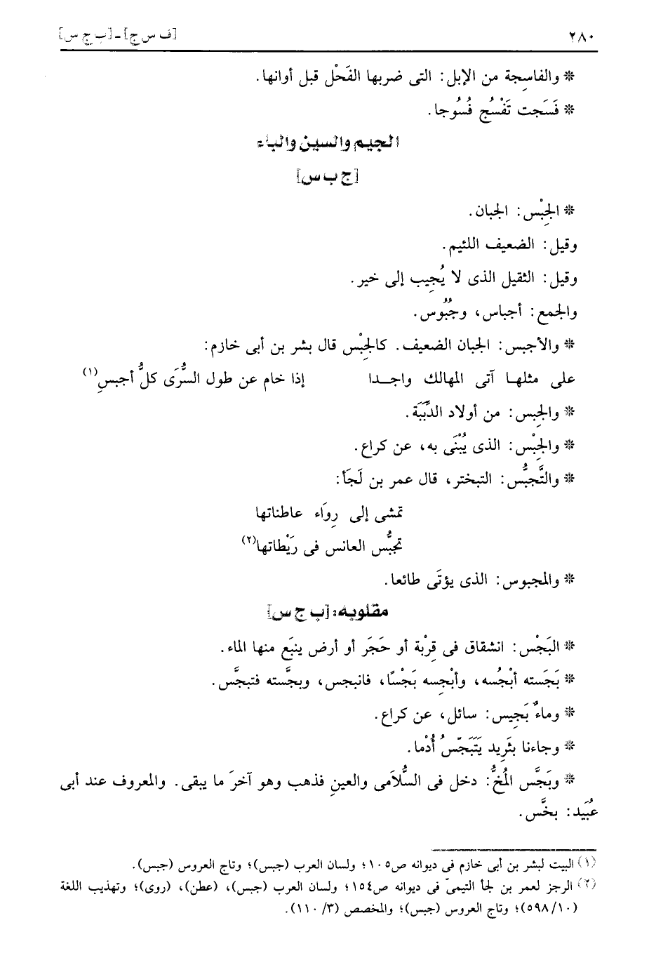والأجبس: الجبان الضَّعِيف. كالجِبْس. قَالَ بشر بن أبي خازم: