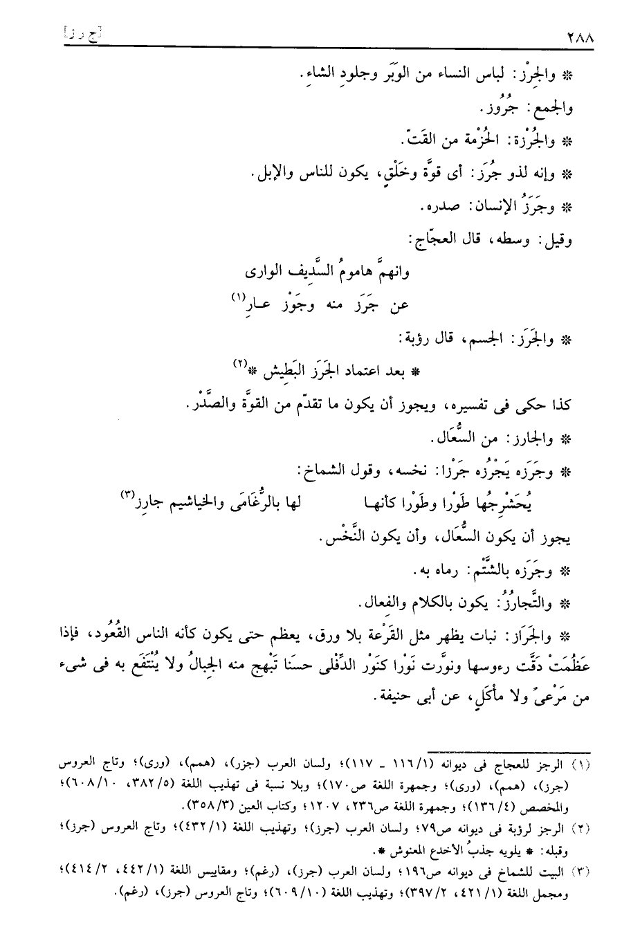 والجَرَز: الْجِسْم، قَالَ رؤبة: