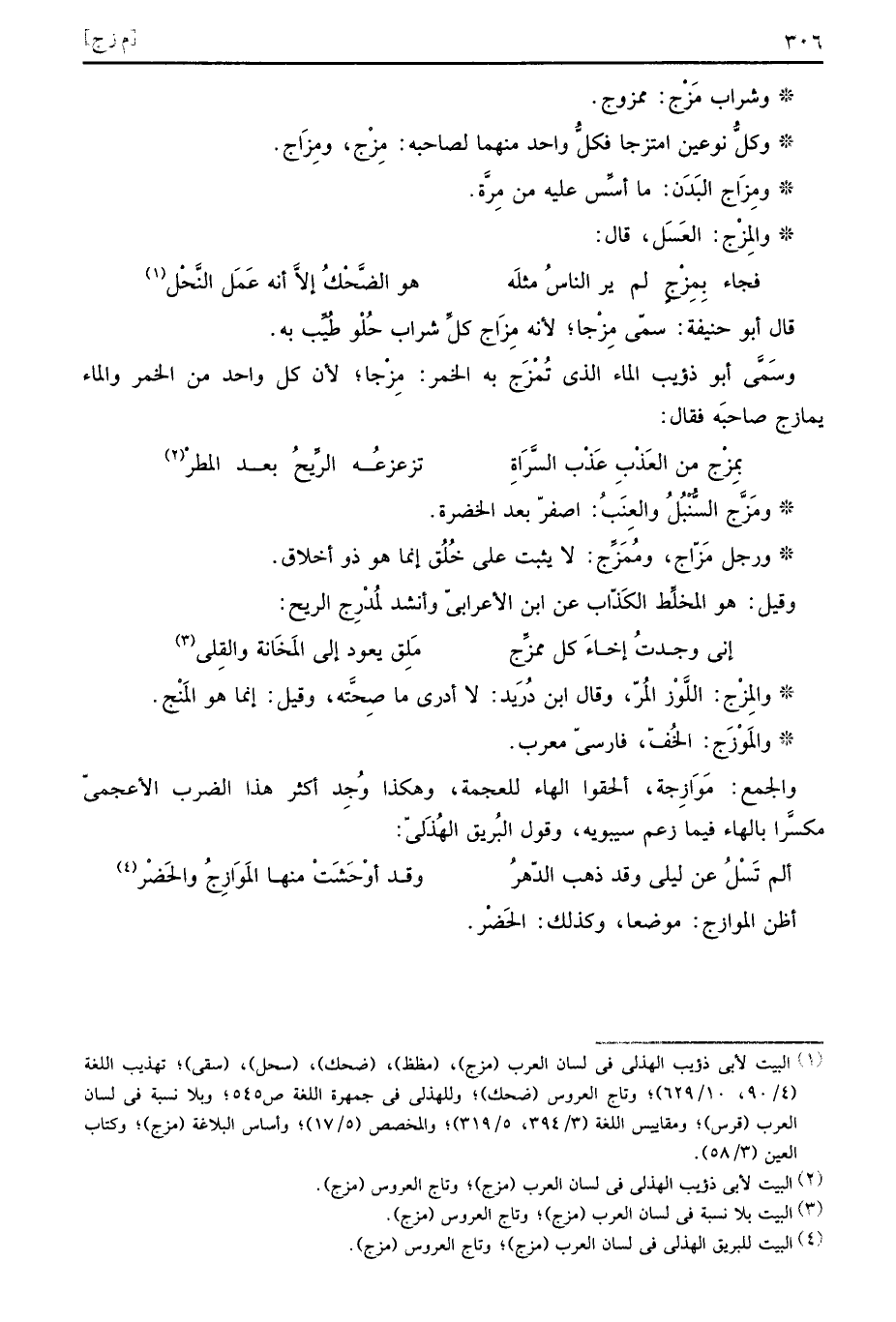 وَالْجمع: مَوَازِجة، ألْحقُوا الْهَاء للعجمة، وَهَكَذَا وجد اكثر هَذَا الضَّرْب الأعجمي مكسرا بِالْهَاءِ فِيمَا زعم سِيبَوَيْهٍ، وَقَول البريق الْهُذلِيّ:
