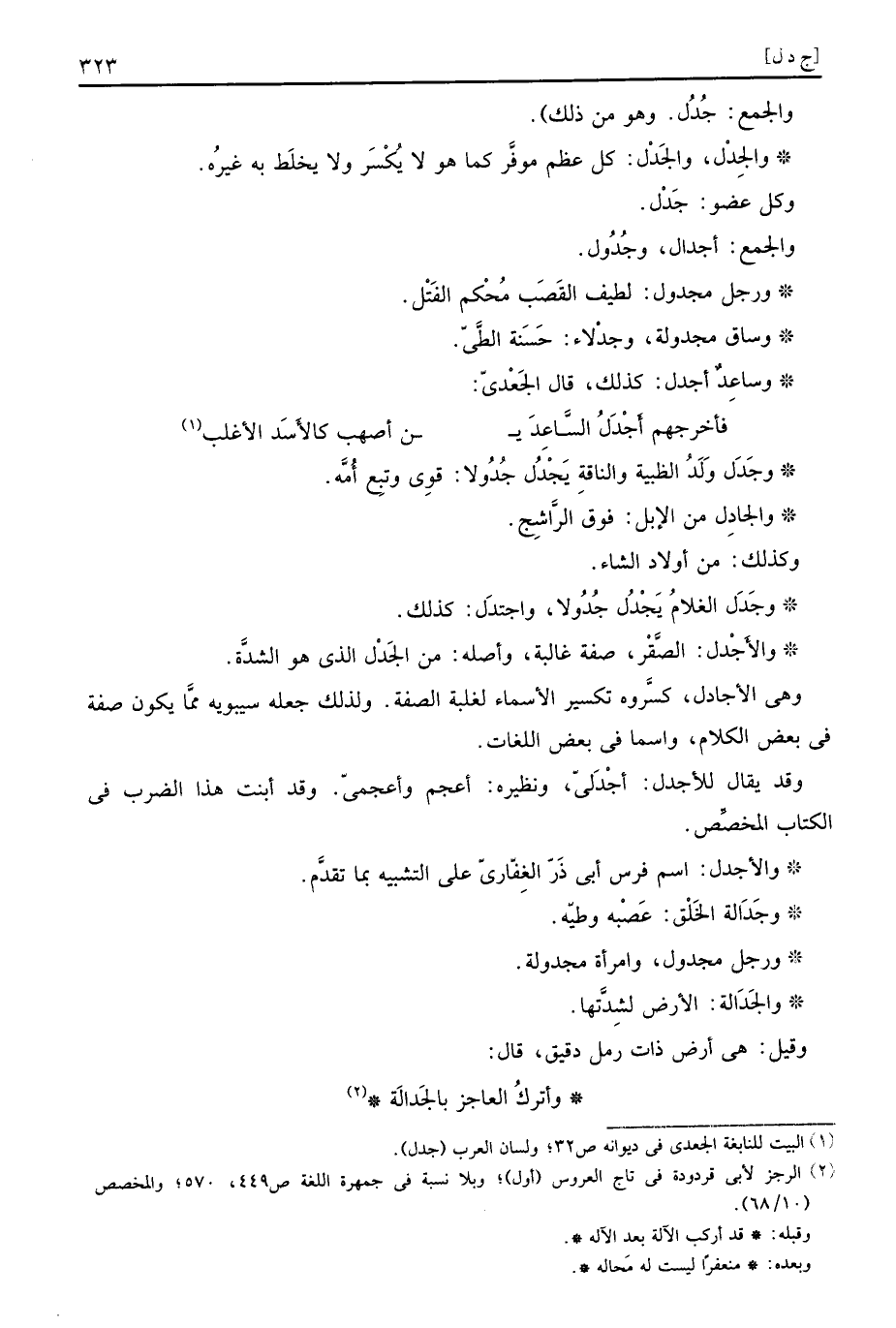 وَهِي الأجادل، كسروه تكسير الْأَسْمَاء لغَلَبَة الصّفة. وَلذَلِك جعله سِيبَوَيْهٍ مِمَّا يكون صفة فِي بعض الْكَلَام، واسما فِي بعض اللُّغَات.