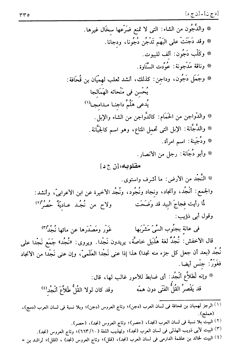 قَالَ الْأَخْفَش: نُجُدٌ لُغَة هُذَيْل خَاصَّة، يُرِيدُونَ نَجْدا. ويروى: " نُجُد " جمع نَجْدا على نُجُد بعد أَن جعل كل جُزْء مِنْهُ نَجدا هَذَا إِذا عَنى نَجْدا العَلَمىّ، وَإِن عَنى نَجْدا من الأنجاد فَغَوْرٌ: جنس أَيْضا.