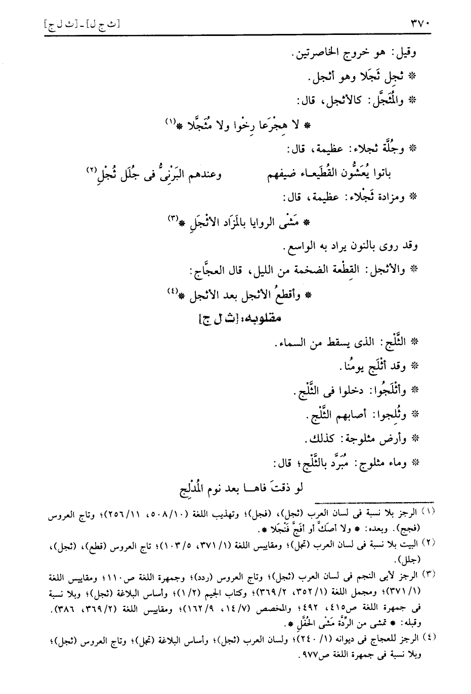 والأثجل: الْقطعَة الضخمة من اللَّيْل، قَالَ العجاج: