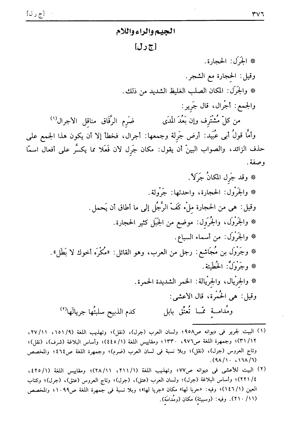 والجَرَل: الْمَكَان الصلب الغليظ الشَّديد من ذَلِك.