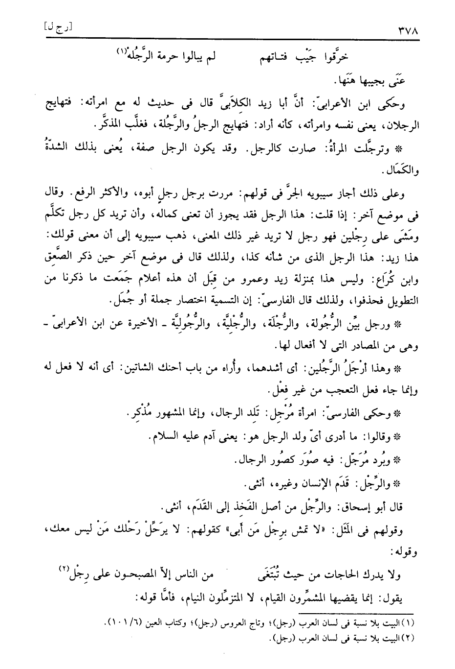 وَهَذَا أرْجَلُ الرَّجُلين: أَي أشدهما، وَأرَاهُ من بَاب أحنك الشاتين: أَي أَنه لَا فعل لَهُ وَإِنَّمَا جَاءَ فعل التَّعَجُّب من غير فعل.