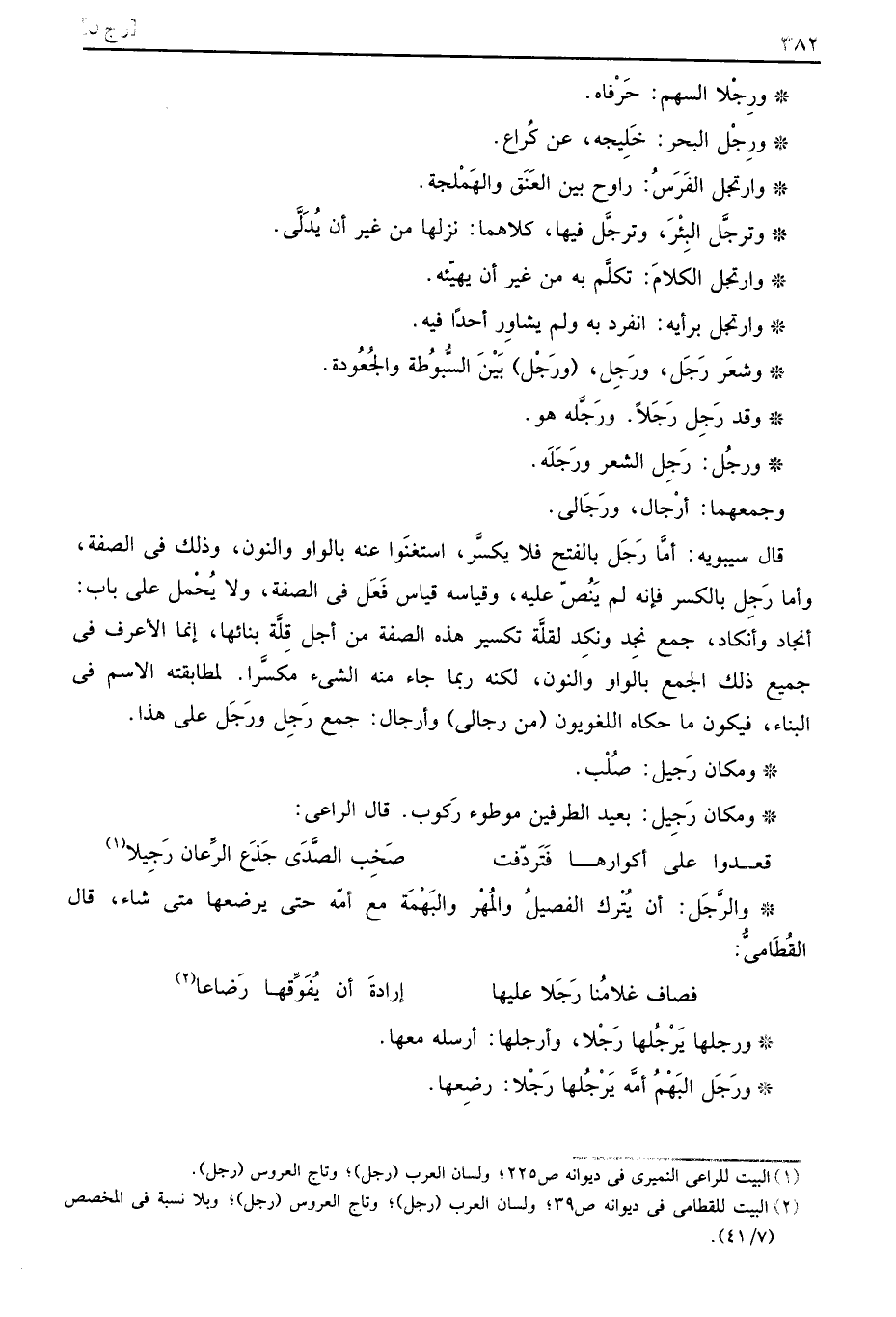 وجمعهما: أرْجال، ورَجَالى.