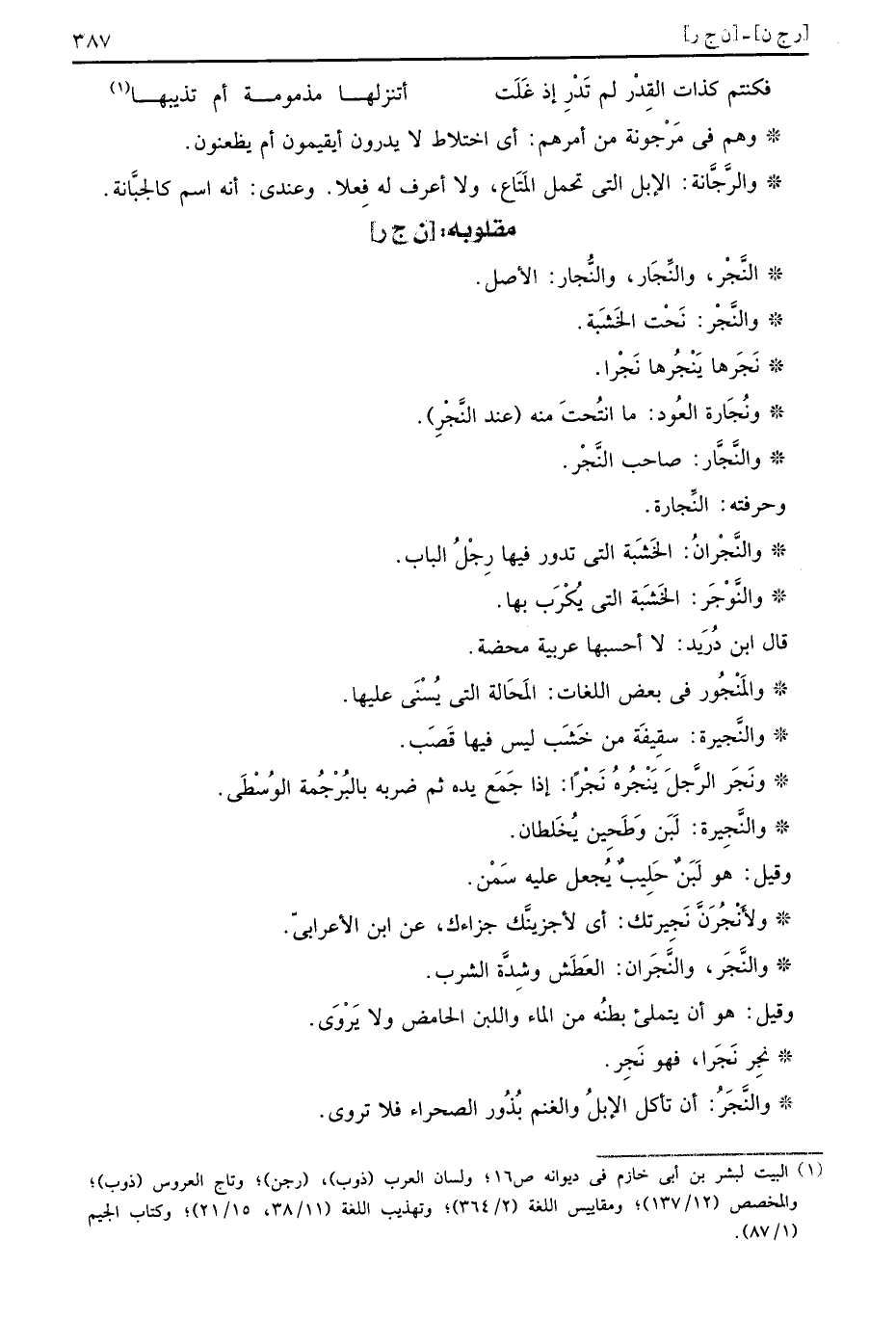 والنَّجْرانُ: الْخَشَبَة الَّتِي تَدور فِيهَا رجل الْبَاب.