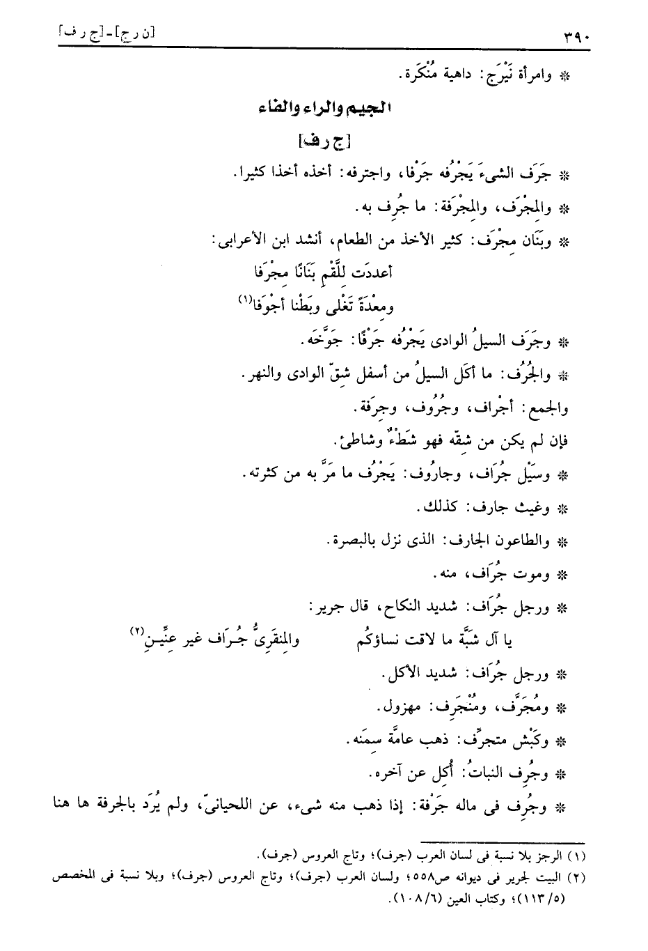 وبنان مِجْرَف: كثير الْأَخْذ من الطَّعَام، أنْشد ابْن الْأَعرَابِي: