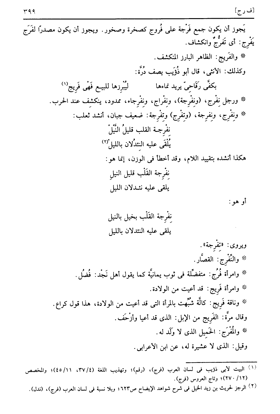 وَقَالَ مرّة: الفَرِيج من الْإِبِل: الَّذِي قد أعيا وأزحف.