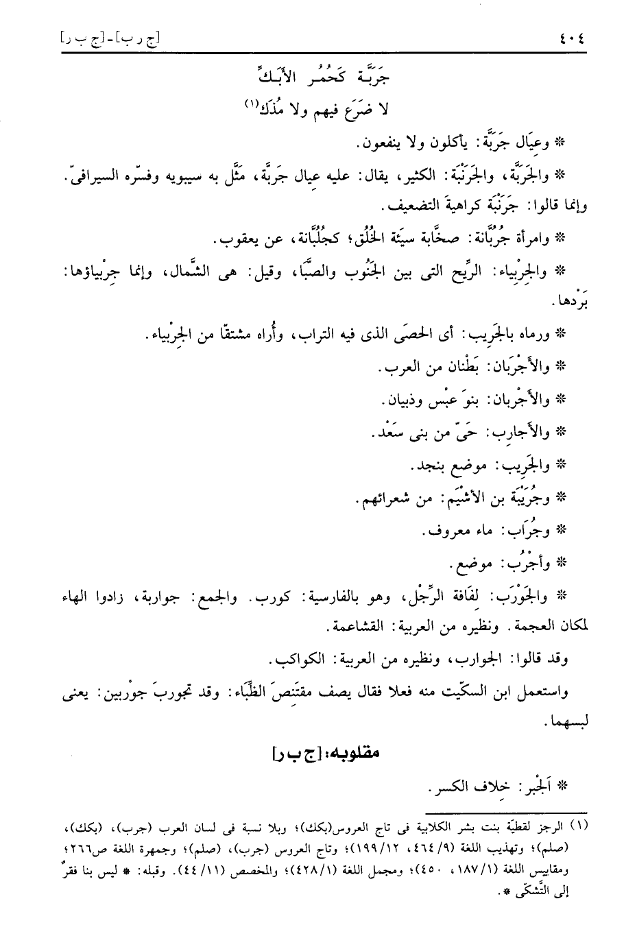 والجَرَبَّة والجَرَنْبَة: الْكثير، يُقَال: عَلَيْهِ عِيَال جَرَبَّة، مثل بِهِ سِيبَوَيْهٍ وَفَسرهُ السيرافي. وَإِنَّمَا قَالُوا: جَرَنْبَة كَرَاهِيَة التَّضْعِيف.