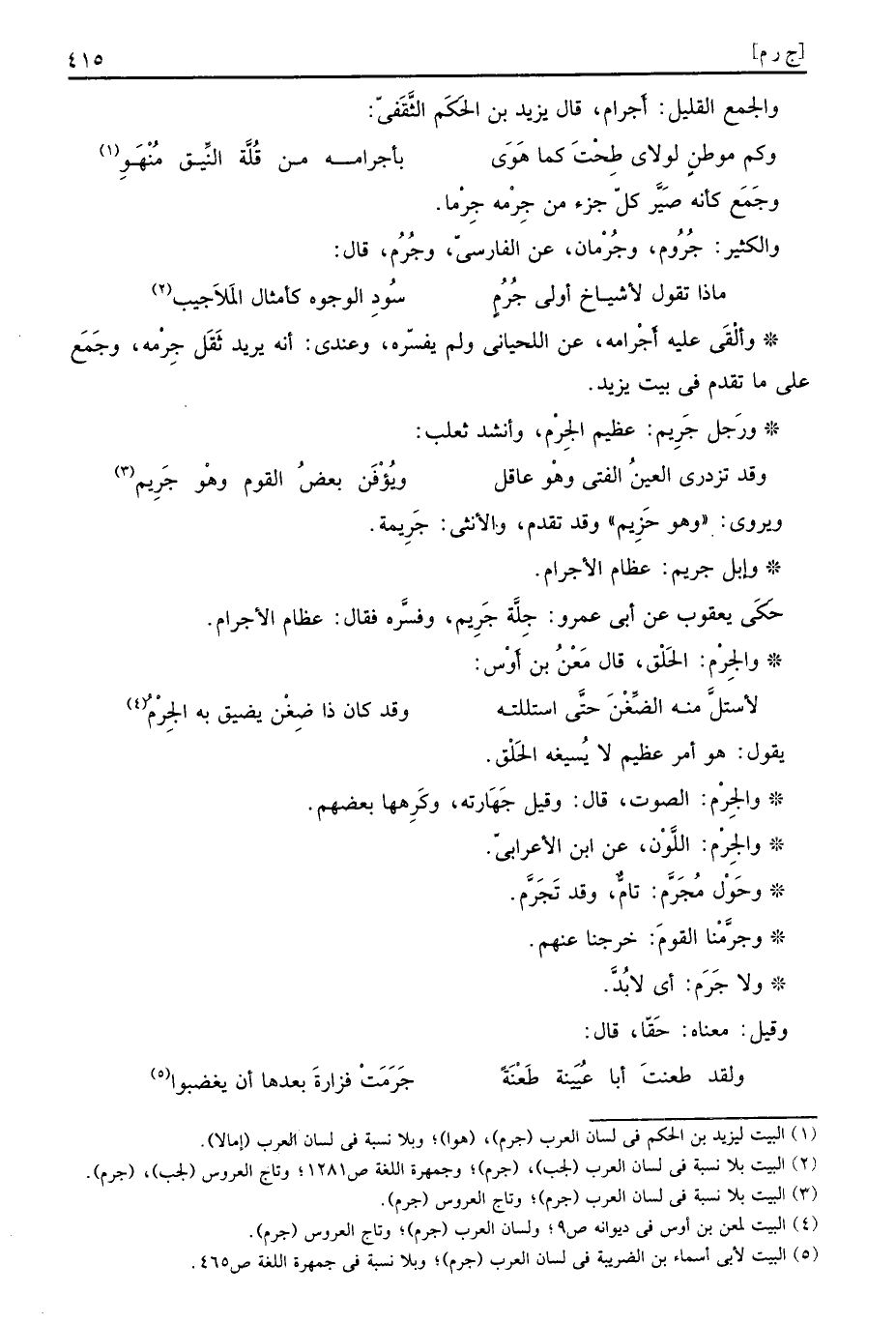 حكى يَعْقُوب عَن أبي عَمْرو: جلة جَرِيم، وَفَسرهُ فَقَالَ: عِظَام الأجرام.
