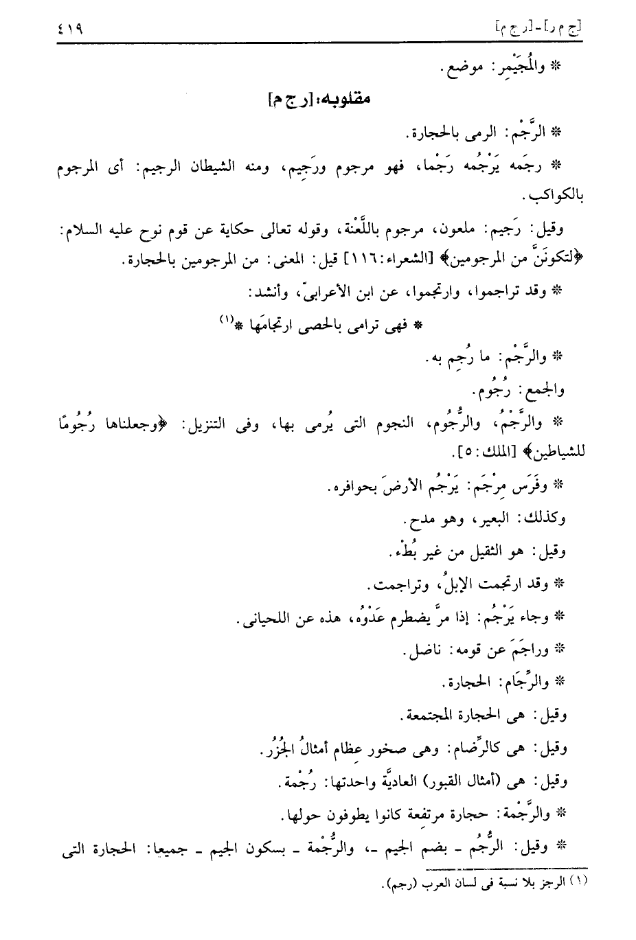 وَالْجمع: رُجُوم.