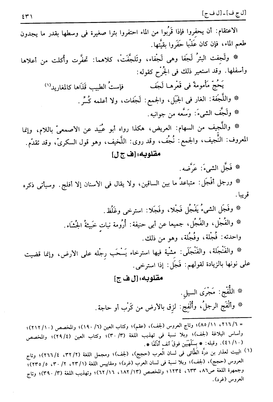 ولَجِفت الْبِئْر لَجَفا وَهِي لَجْفاء، وتَلجَّفَتْ، كِلَاهُمَا: تحفرت وأكلت من أَعْلَاهَا وأسفلها. وَقد استعير ذَلِك فِي الْجرْح كَقَوْلِه: