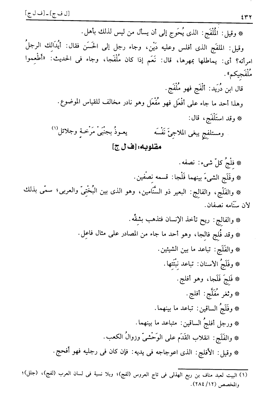 وَقيل: المُلْفَج: الي يحوج إِلَى أَن يسْأَل من لَيْسَ لذَلِك بِأَهْل.