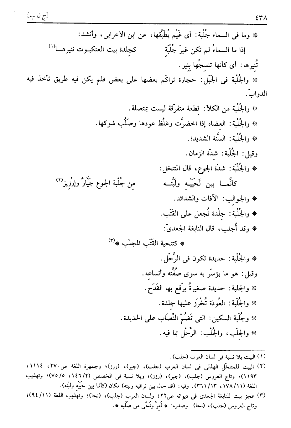 والجُلْبة: حَدِيدَة تكون فِي الرحل.
