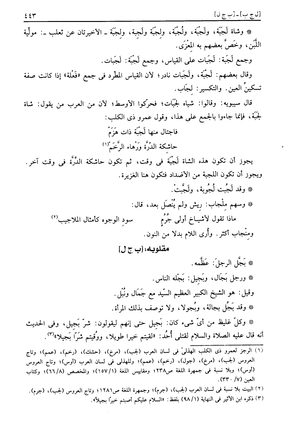 قَالَ سِيبَوَيْهٍ: وَقَالُوا: شِيَاه لَجَبات؛ فحركوا الاوسط؛ لِأَن من الْعَرَب من يَقُول: شَاة لَجَبة، فَإِنَّمَا جَاءُوا بِالْجمعِ على هَذَا، وَقَول عَمْرو ذِي الْكَلْب: