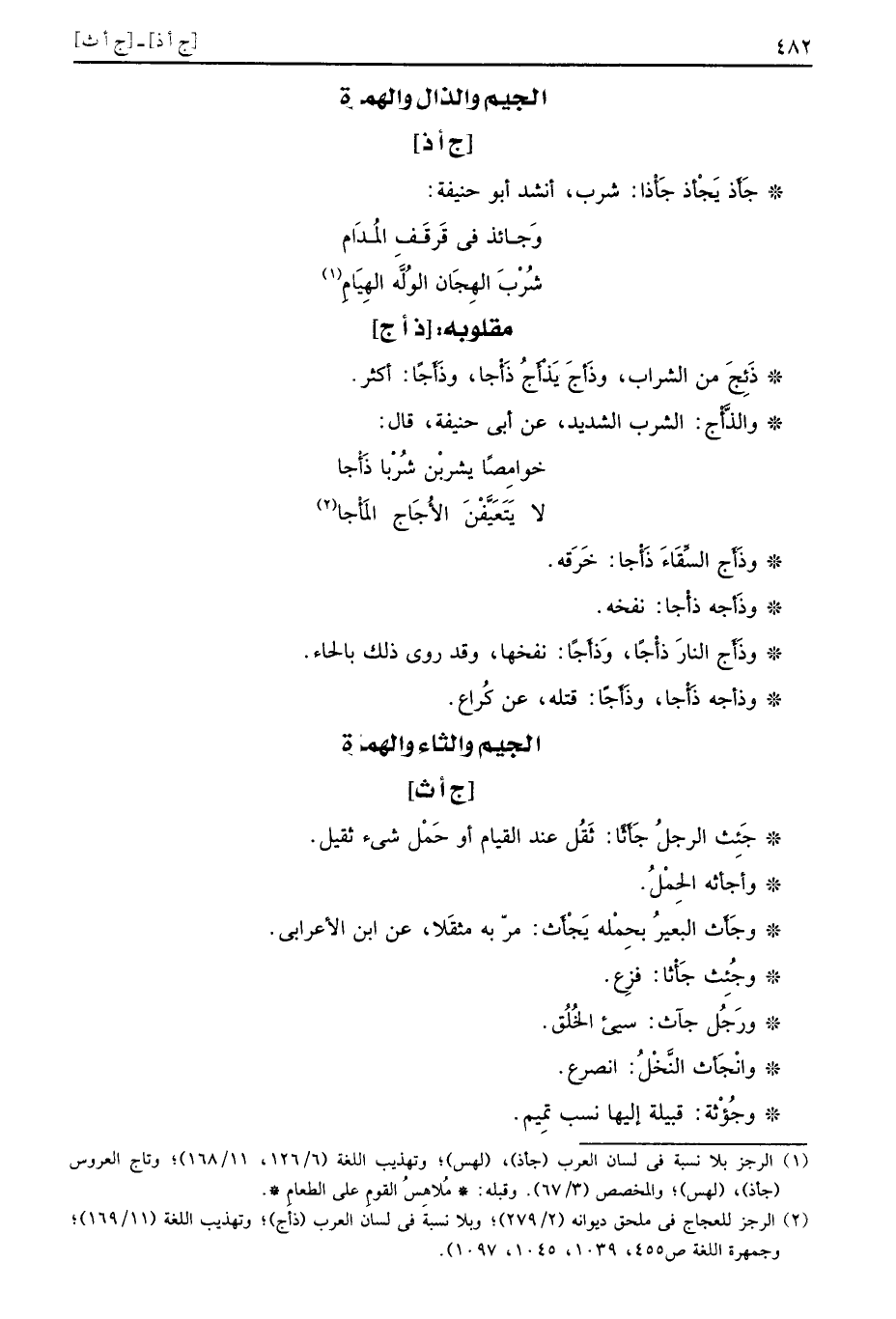 والذَّأج: الشّرْب الشَّديد، عَن أبي حنيفَة، قَالَ: