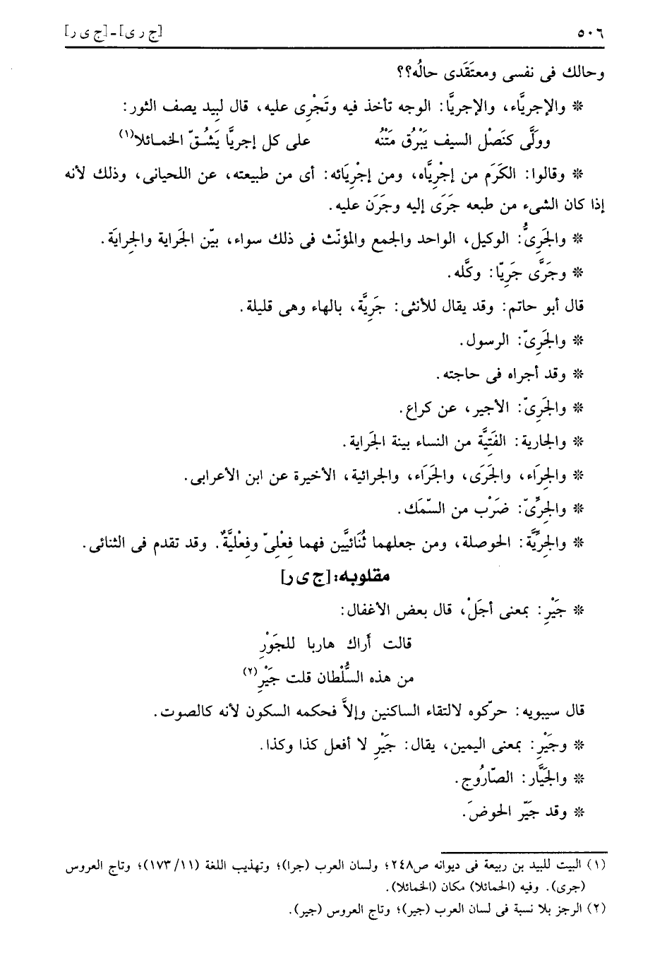 وحالك فِي نَفسِي ومعتقدي حَاله؟؟ والإجريَّاء، والإجريَّا: الْوَجْه تَأْخُذ فِيهِ وتَجْرِي عَلَيْهِ، قَالَ لبيد يصف الثور: