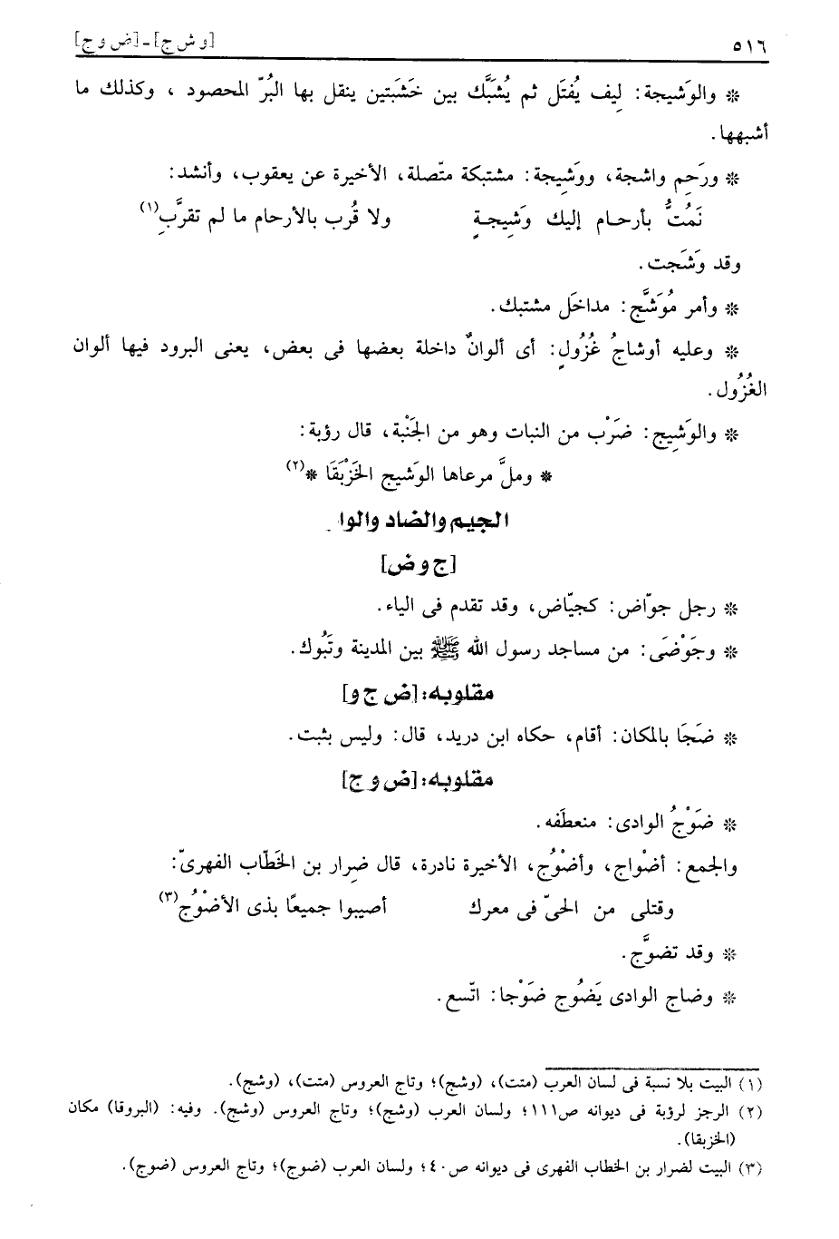 وَالْجمع: أضْواج، وأضْوُج، والأخيرة نادرة، قَالَ ضرار بن الْخطاب الفِهري: