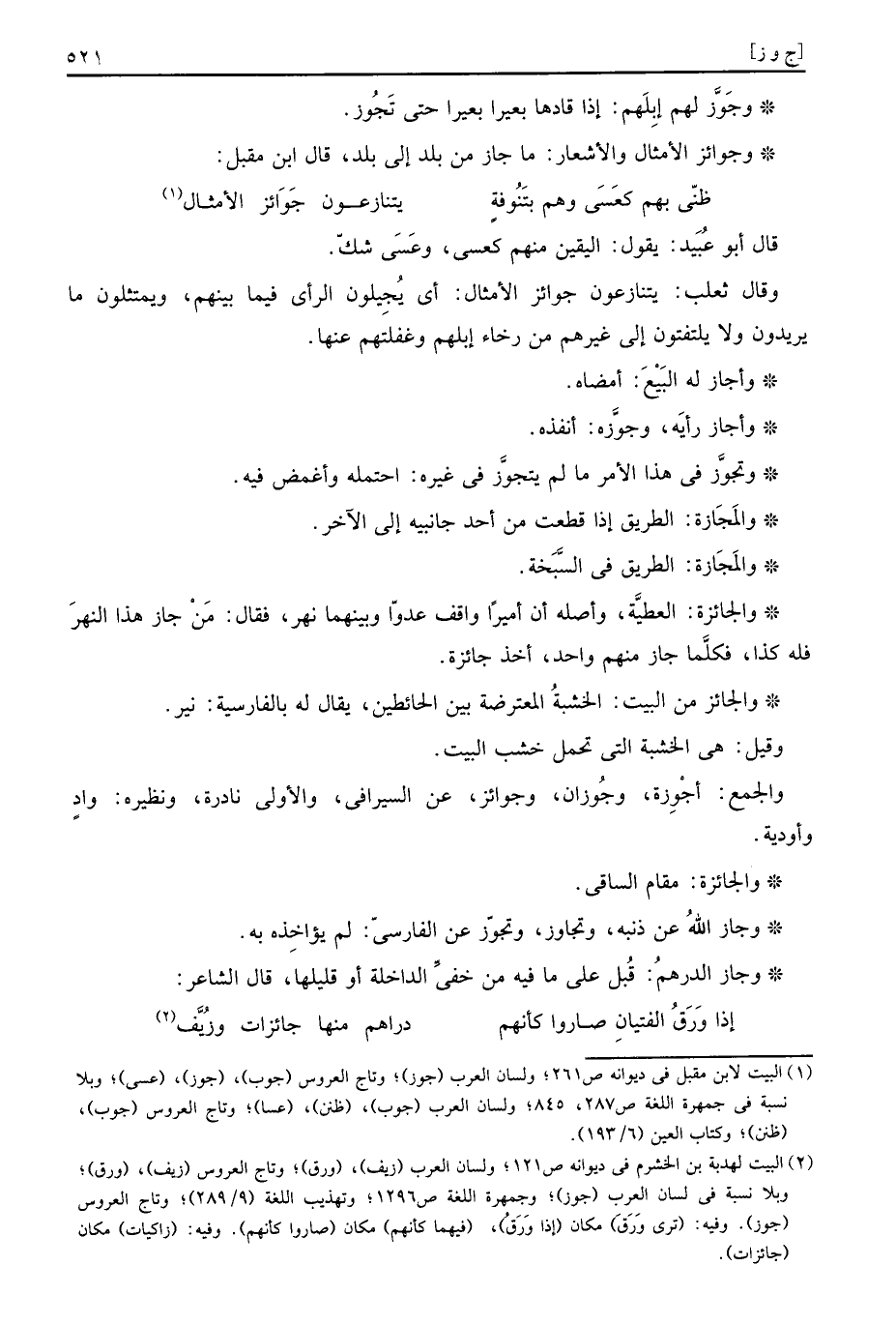 وجوائز الْأَمْثَال والأشعار: مَا جَازَ من بلد إِلَى بلد، قَالَ ابْن مقبل: