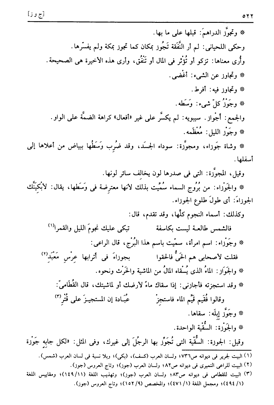 والجَوَاز: المَاء الَّذِي يسقاه المَال من الْمَاشِيَة والحرث وَنَحْوه.