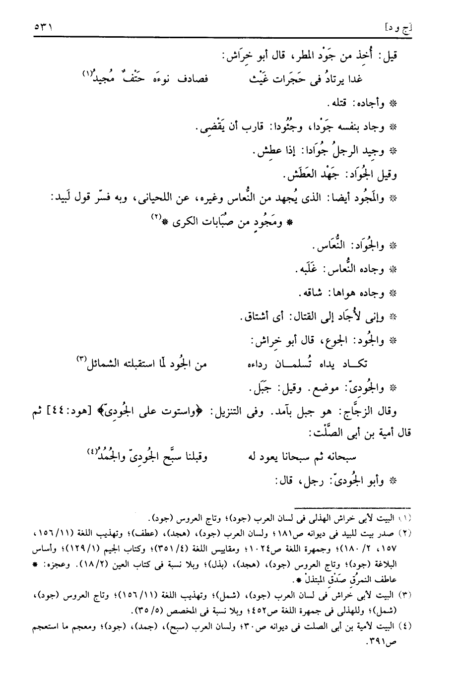 والجُود: الْجُوع، قَالَ أَبُو خرَاش:
