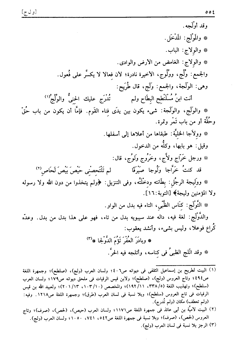 وَالْجمع: وُلُج، ووُلُوج، الْأَخِيرَة نادرة؛ لِأَن فِعالا لَا يكسر على فعول.
