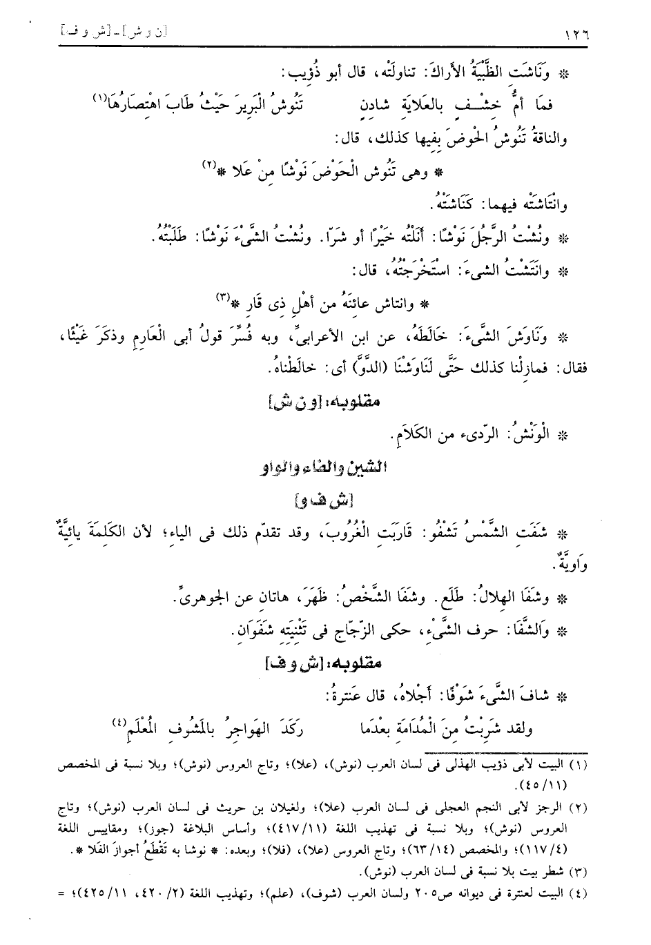 وَنَاشَتِ الظَّبْيَةُ الأَراكَ تناولَتْه قال أبو ذُؤَيب