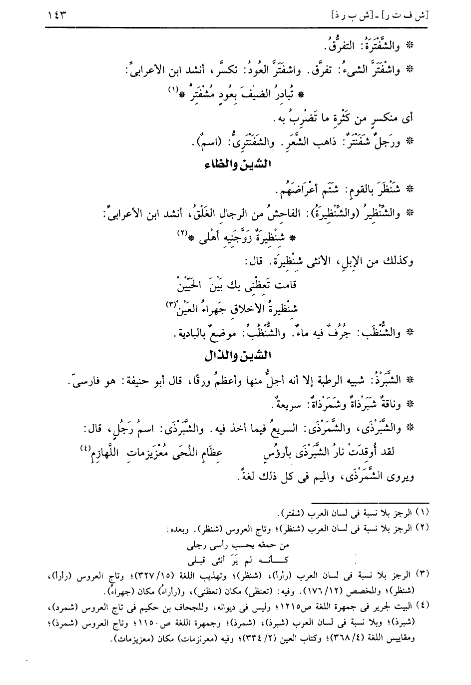 (لقد أُوِقدَتْ نارُ الشَّبَرْذَي بأرؤُسٍ ... عِظَامِ اللِّحَى مُعْزَيز ماتِ اللَّهازِمِ)