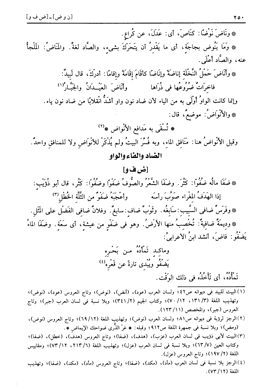 (فاخِرَاتٌ ضُرُوعُها في ذُرَاها ... وأَنَاضَ العَيْدَانُ والجَبَّارُ)