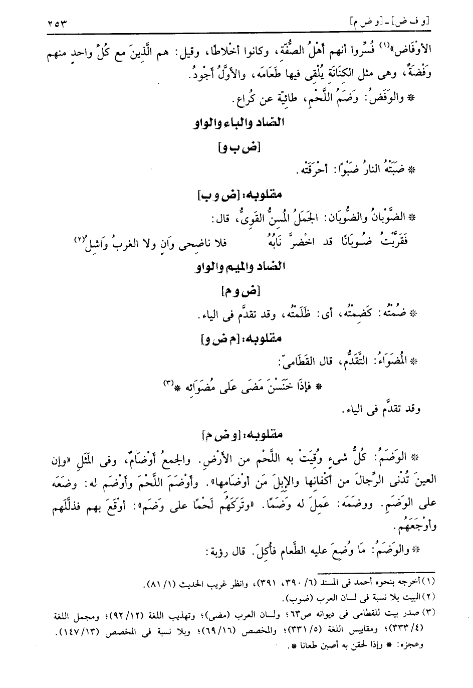 الأوْفَاض فُسِّروا أنهم أَهْلُ الصُّفّةِ وكانوا أخْلاطاً وقيل هم الَّدِينَ مع كُلِّ واحدٍ منهم وَفْضَةٌ وهي مثل الكِنَانَةِ يُلْقِي فيها طَعَامَه والأَوَّلُ أَجْودُ والوَفَضُ وَضَمُ اللَّحْمِ طائِيّة عن كُراع