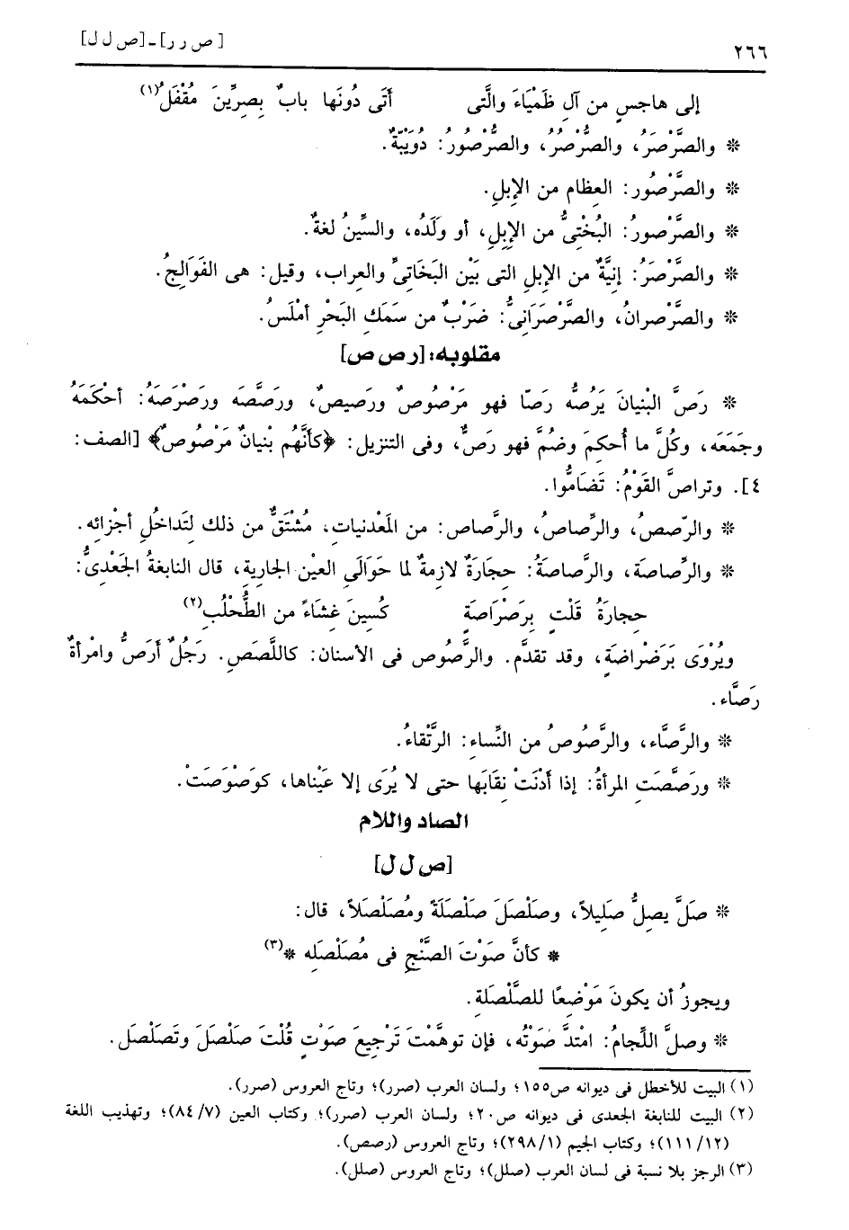 ويجوزُ أن يكونَ مَوْضِعاً للصَّلْصَلةِ وصلَّ اللِّجامُ امْتدَّ صَوْتُه فإن توهَّمْتَ تَرْجِيعَ صَوْتٍ قُلْتَ صَلْصَلَ وتَصَلْصَل