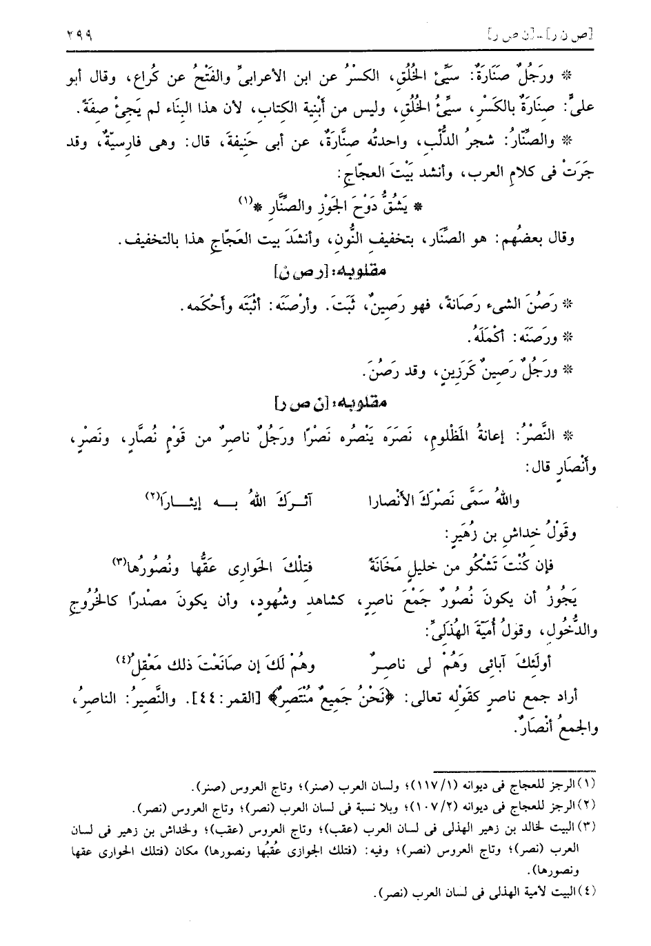 يَجُوزُ أن يكونَ نُصُورٌ جَمْعَ ناصِرٍ كشاهدِ وشُهودٍ وأن يكونَ مصْدراً كالخُرُوجِ والدُّخُولِ وقولُ أُمَيَّةَ الهُذَلِيِّ