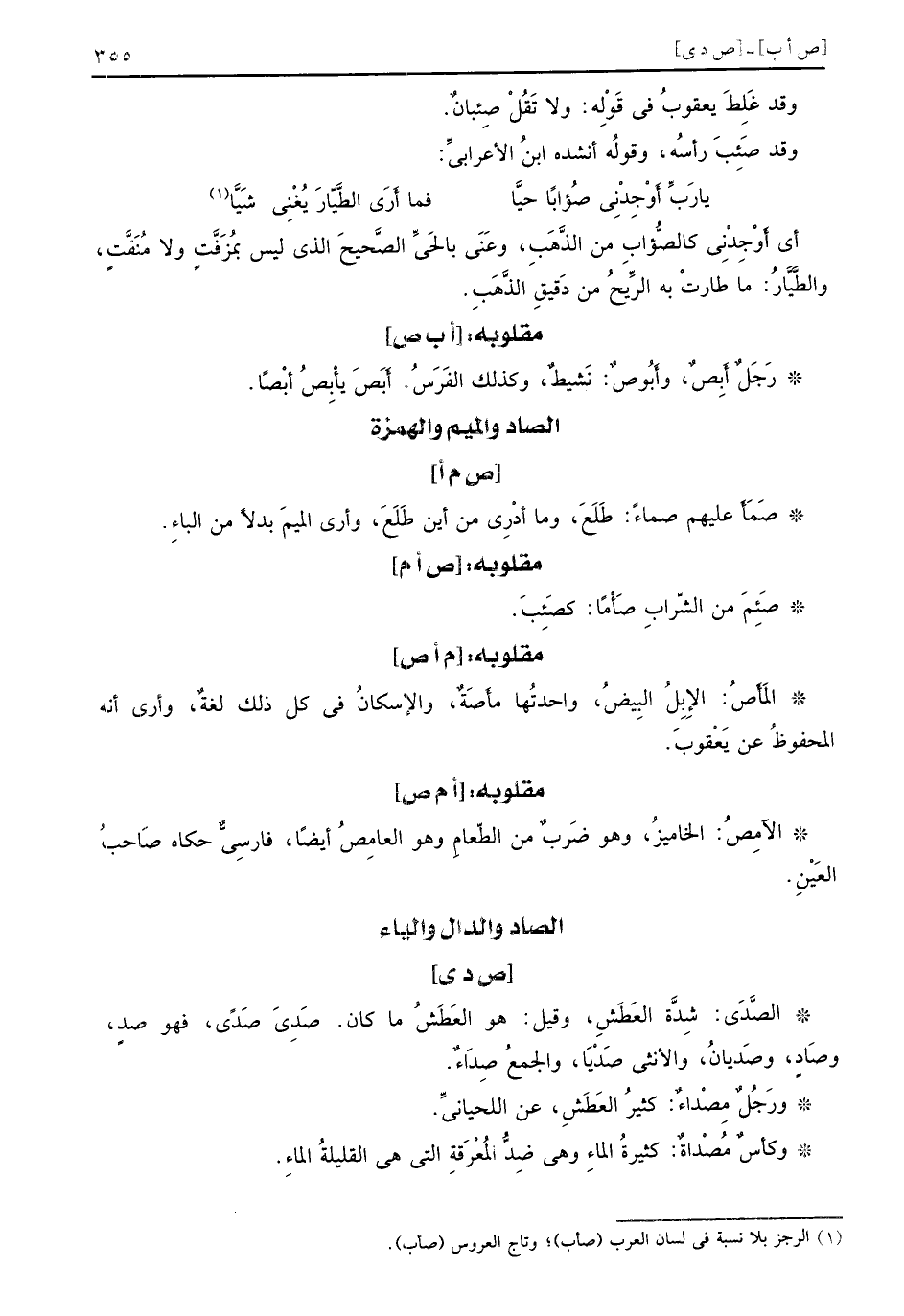 وقد غَلِطَ يعقوبُ في قَوْلِه ولا تَقُلْ صِئبانٌ وقد صَئِبَ رأسُه وقولُه أنشده ابنُ الأعرابيِّ