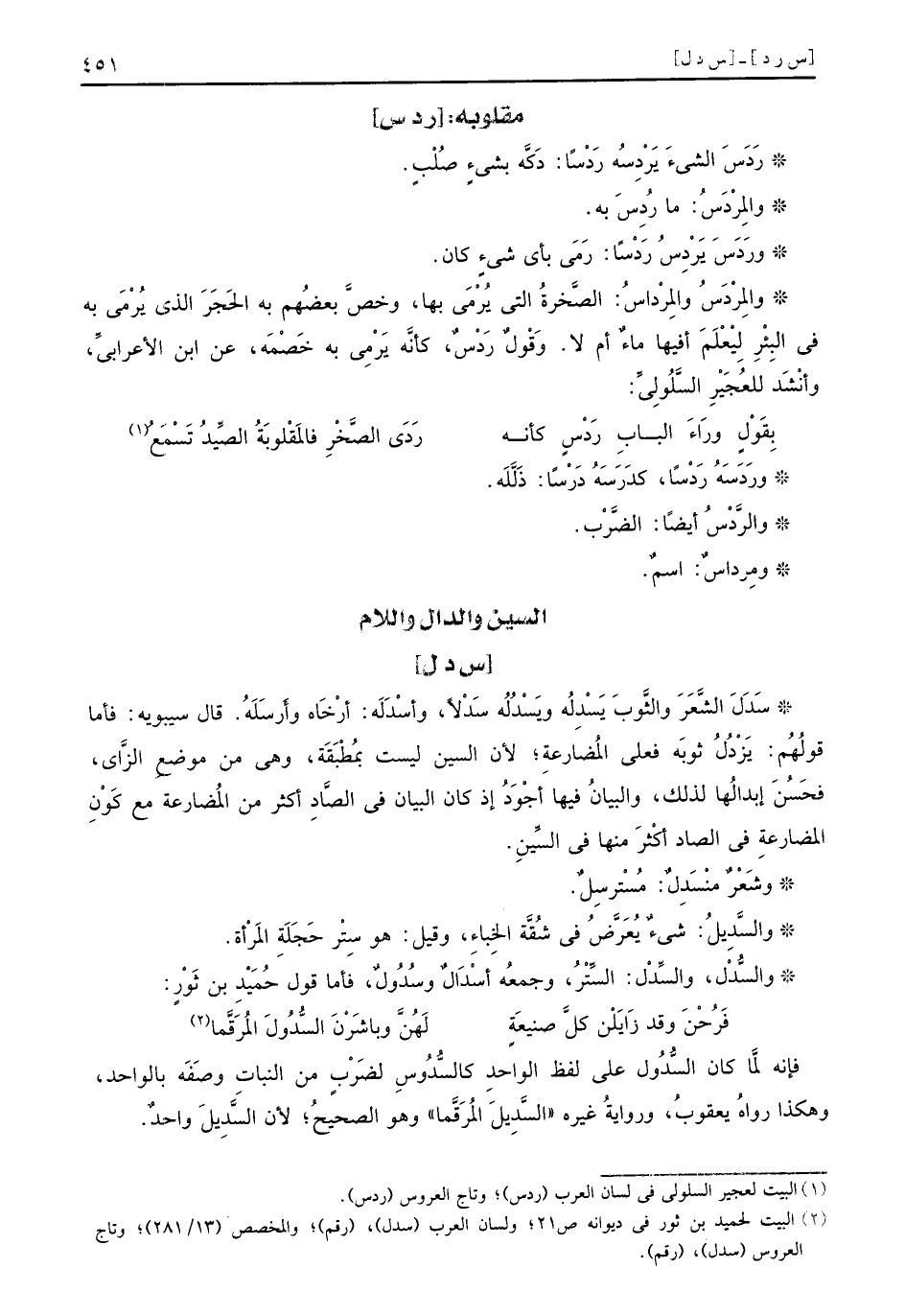 السين والدال واللام س د ل