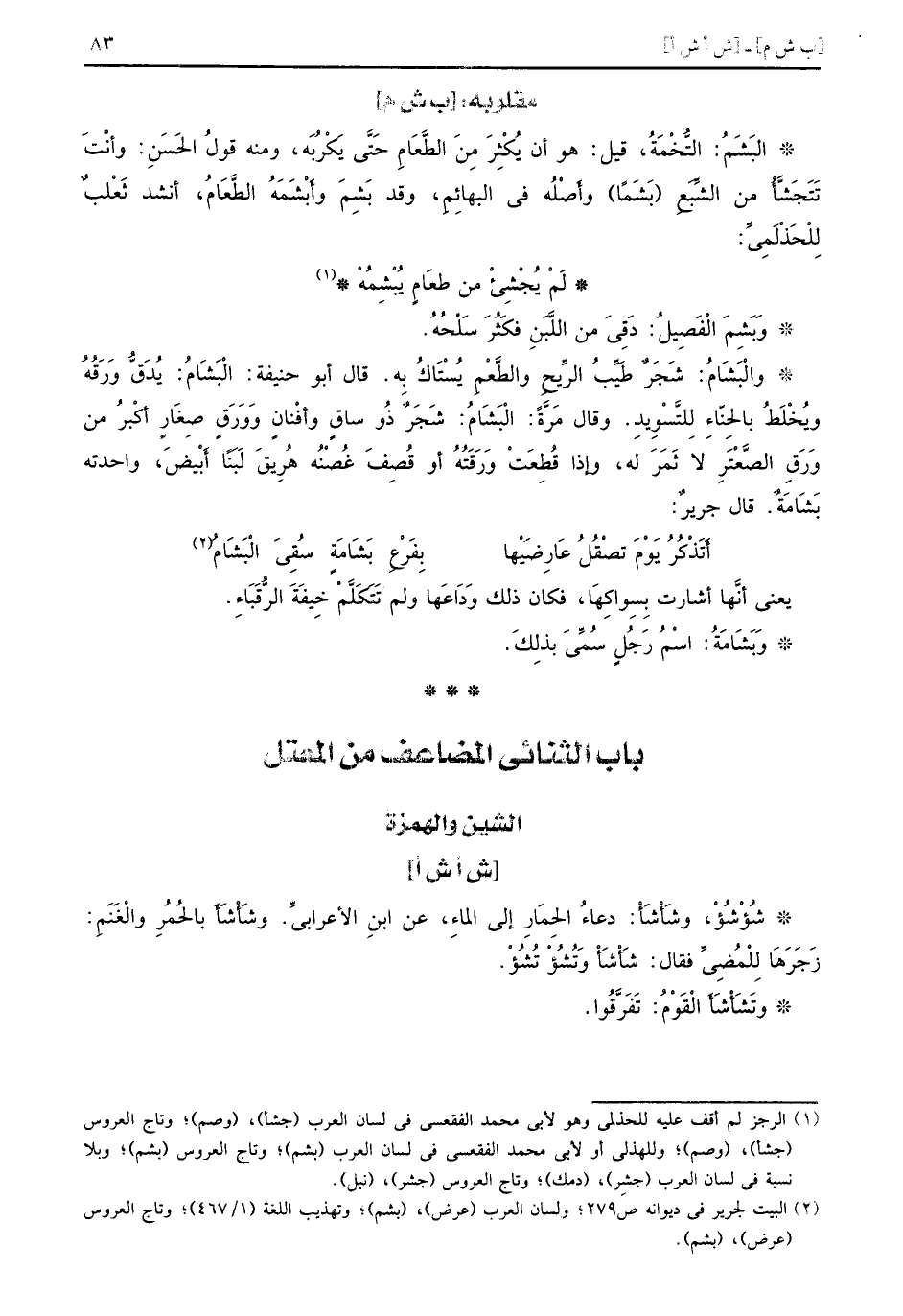 باب الثنائي المضاعف من المعتل الشين والهمزة ش أش أ