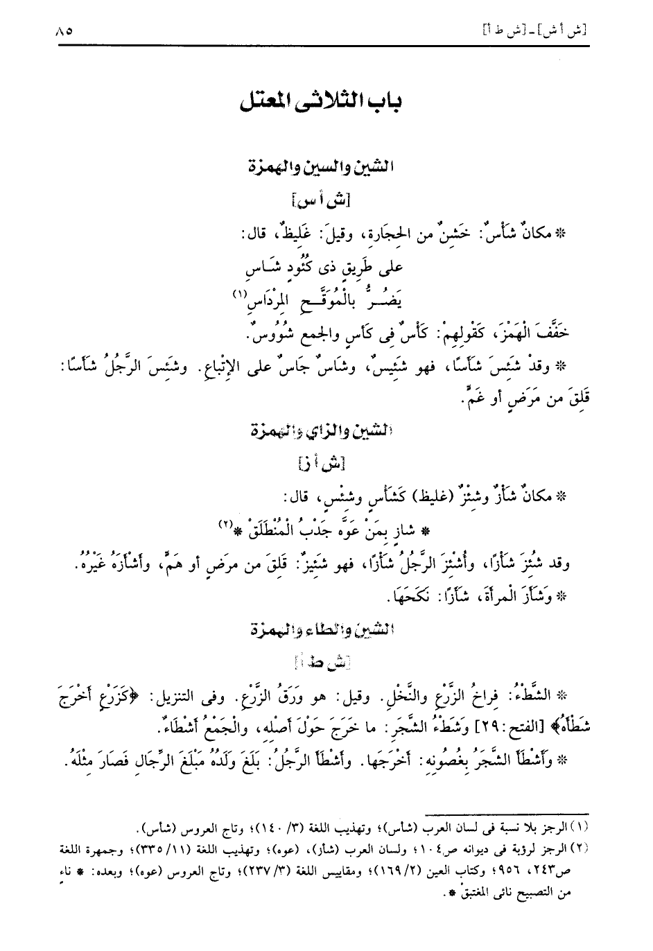 باب الثلاثي المعتل الشين والسين والهمزة ش أس