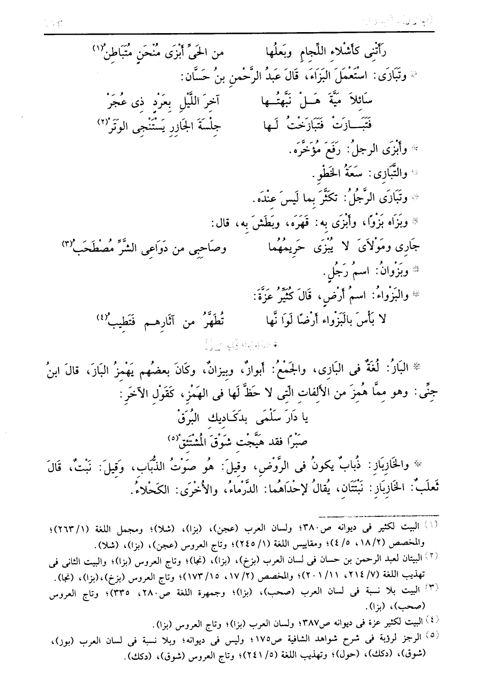 ... وبَزْوانُ: اسمُ رَجُلٍ. والبَزْواءُ: اسمُ أَرْضِ، قَالَ كُثَيَّرُ عَزَّةَ: