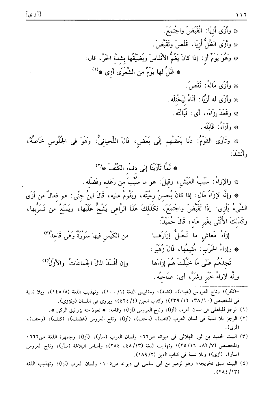 وأَزَى مَالُه: نَقَضَ. وأَزَى له أَزْياً: أَتَاهُ ليَخْتلَه. وقَعَدَ إزَاءَه، أي: قُبَالَتَه. وآزَاهُ: قَابَلَه. وتآزَي القَوْمُ: دَنَا بعَضْهُم إلَى بَعْضٍ، قَالَ اللِّحيانِيٌّ: وَهْوَ في الجُلُوسِ خَاصَّةً، وأَنْشَدَ: