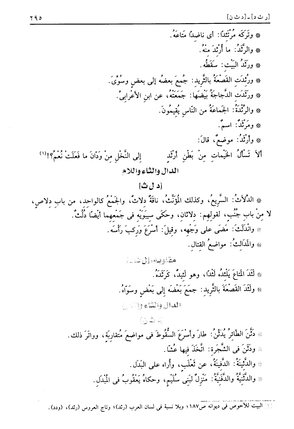 : [ل ث د] لَثَدَ المَتاعَ يَلْثدُه لَثْداً، وهو لَثِيدٌ، كَرَثَدَهُ. ولَثَدَ القَصْعَةَ بالثَّرِيدِ: جمَعَ بَعْضَه إِلى بَعْضٍ وسَوّاهُ.